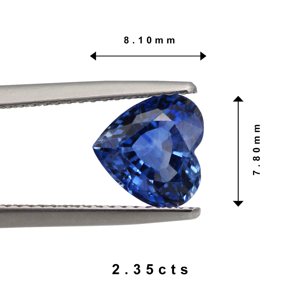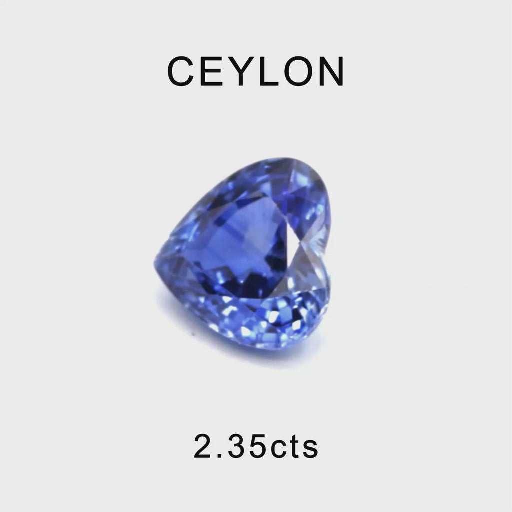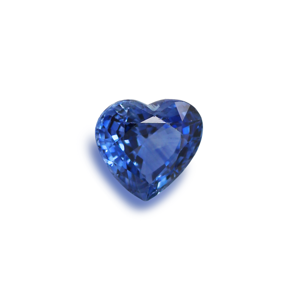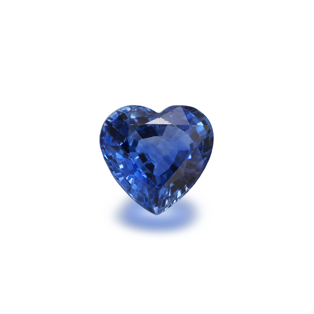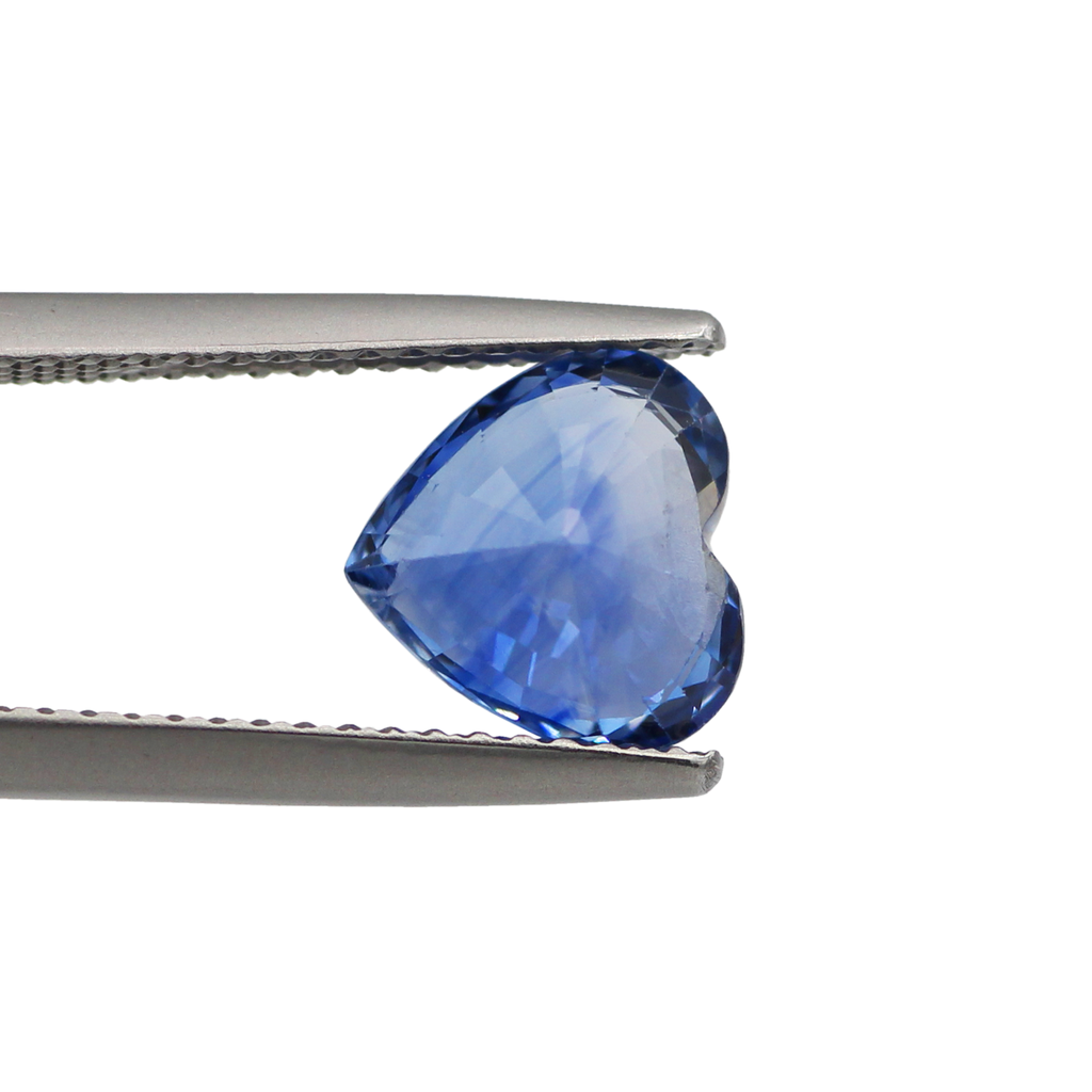 A Natural Heated Blue Sapphire Heart from Sri Lanka. This stone has excellent fire and a pleasing shape. It has a natural inclusion, and the colour is a nice soft blue.