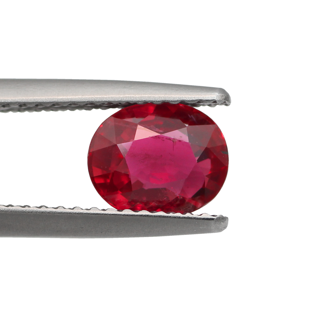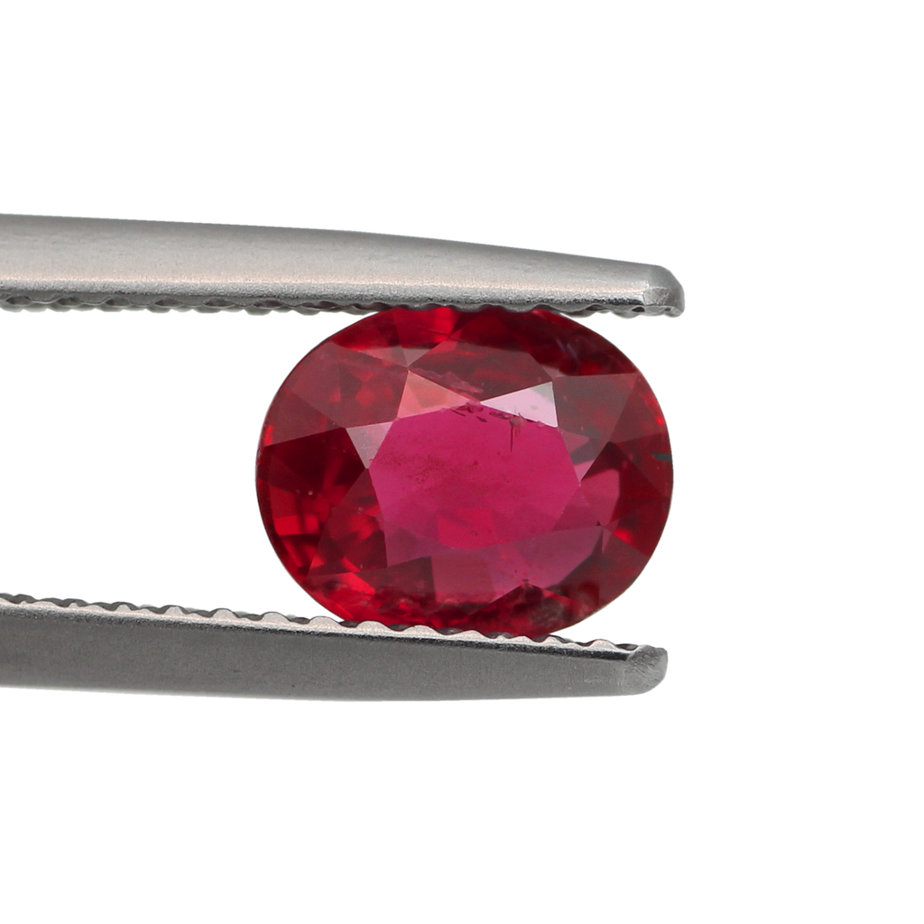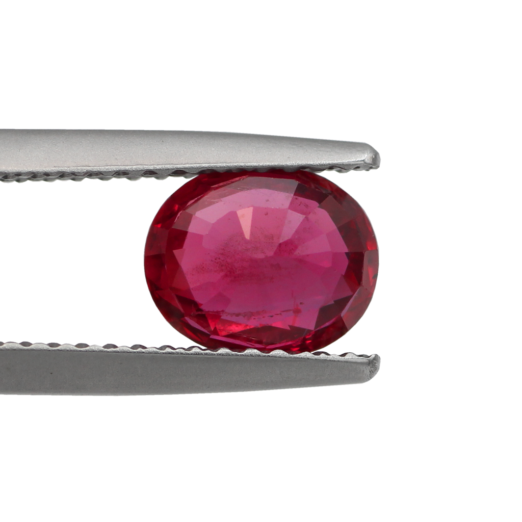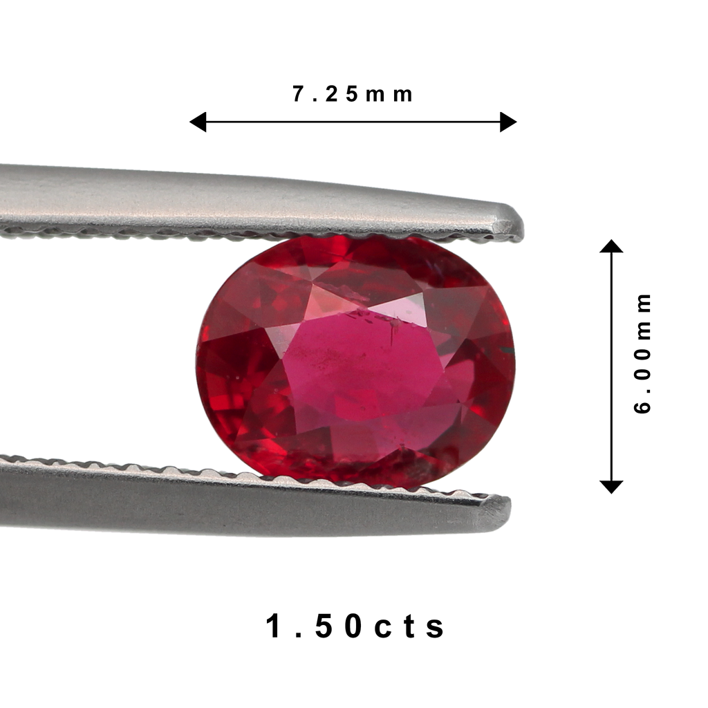 A natural unheated Ruby oval cut stone. This stone has brilliant fire, a strong luster, and a pleasing red colour with a proportional face.
