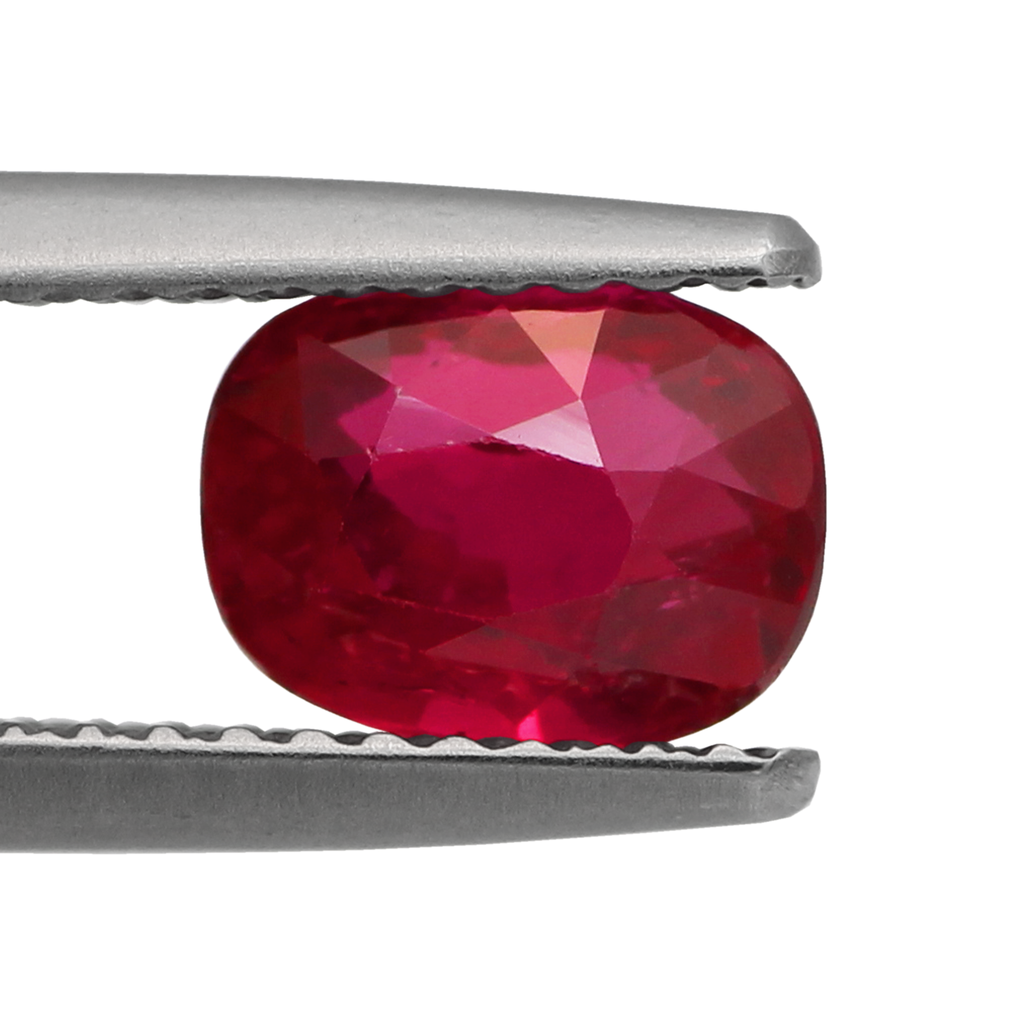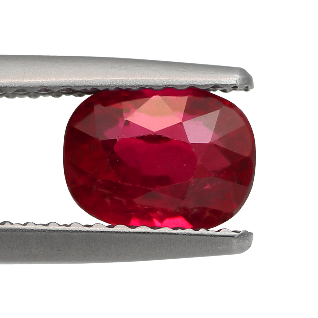 A Heated Pigeon Blood Ruby Oval cut stone. This stone has a crisp fire, a strong luster, and good cutting with a proportional face.
