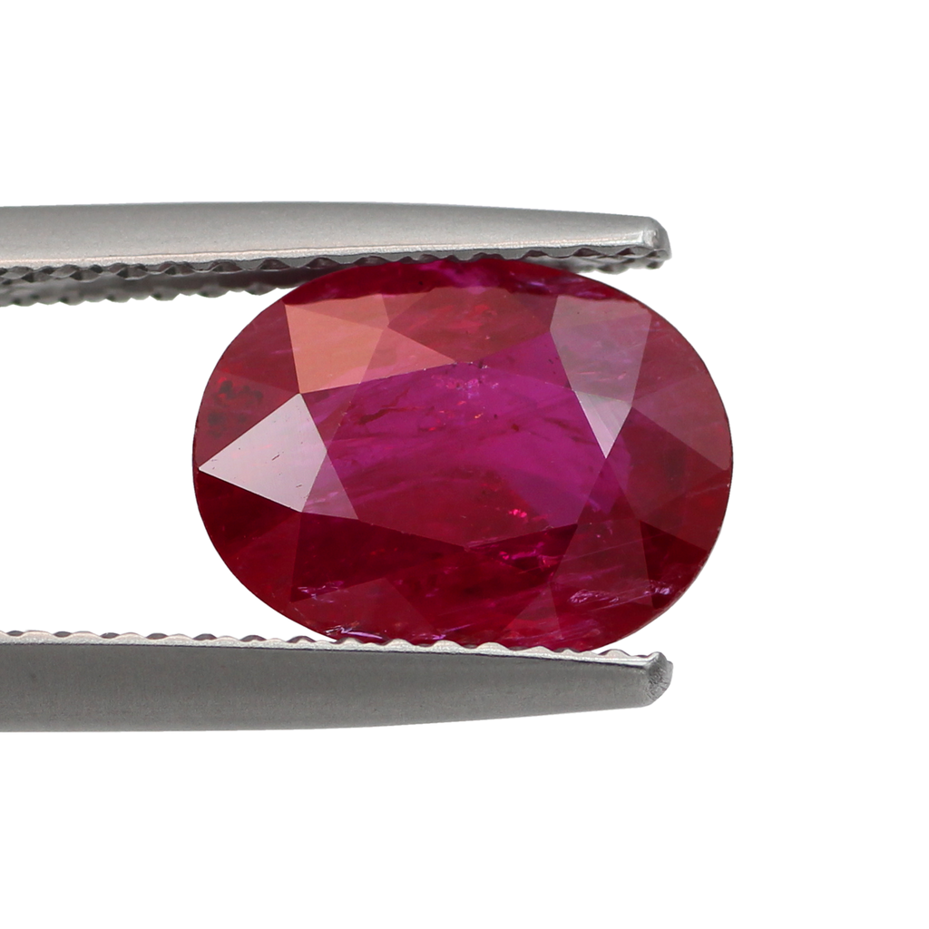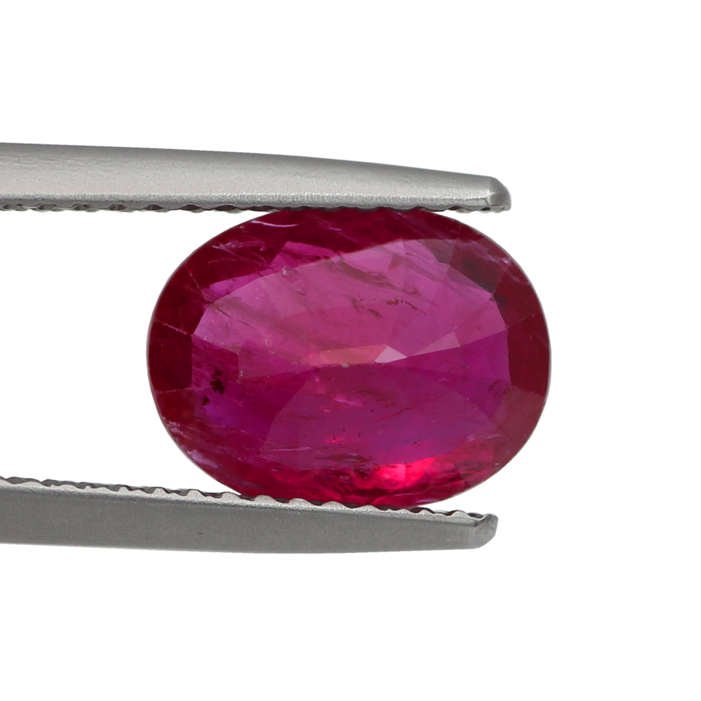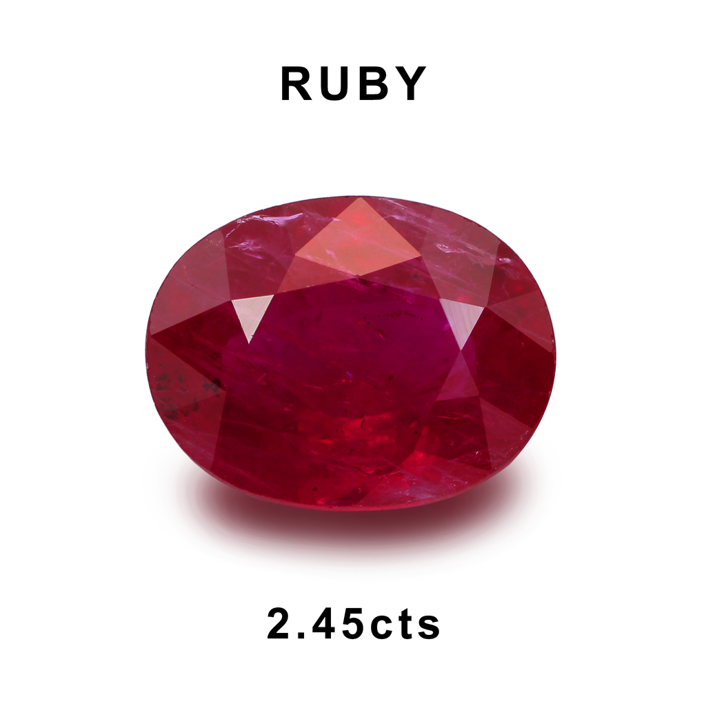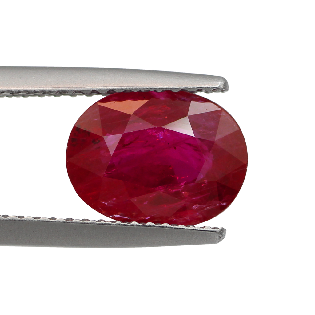 A Heated Pigeon blood Ruby Oval with a strong luster and sharp fire. Some natural inclusions and has a proportional shape.