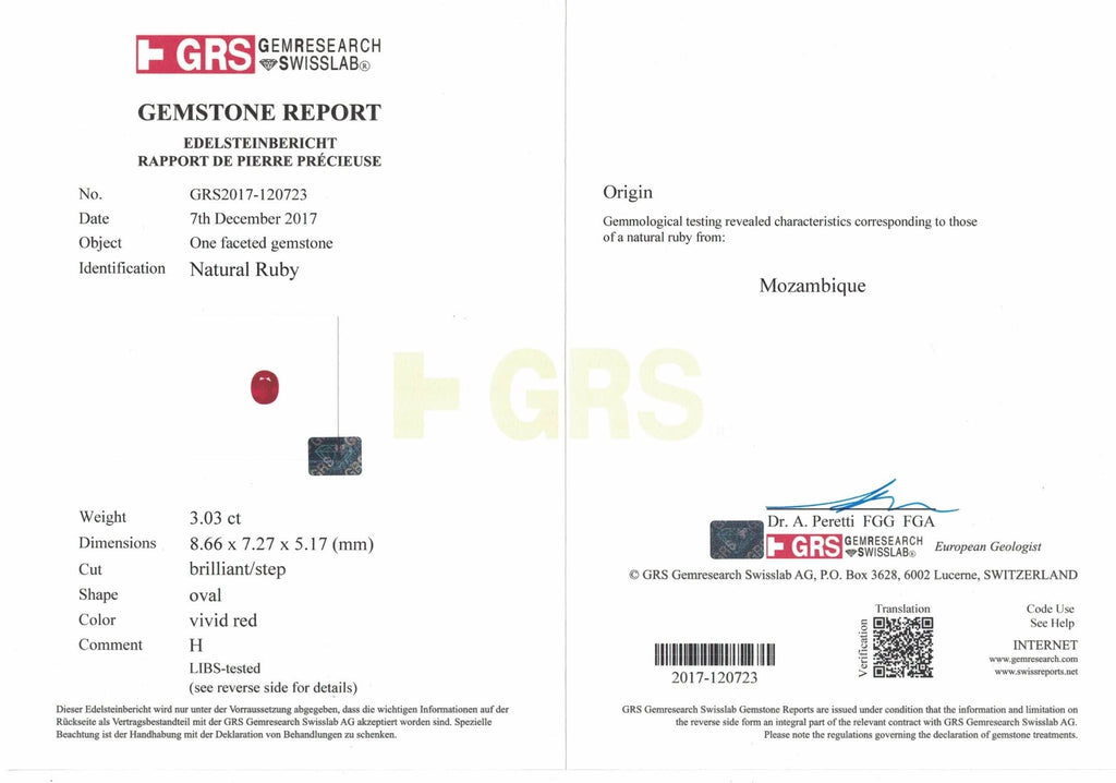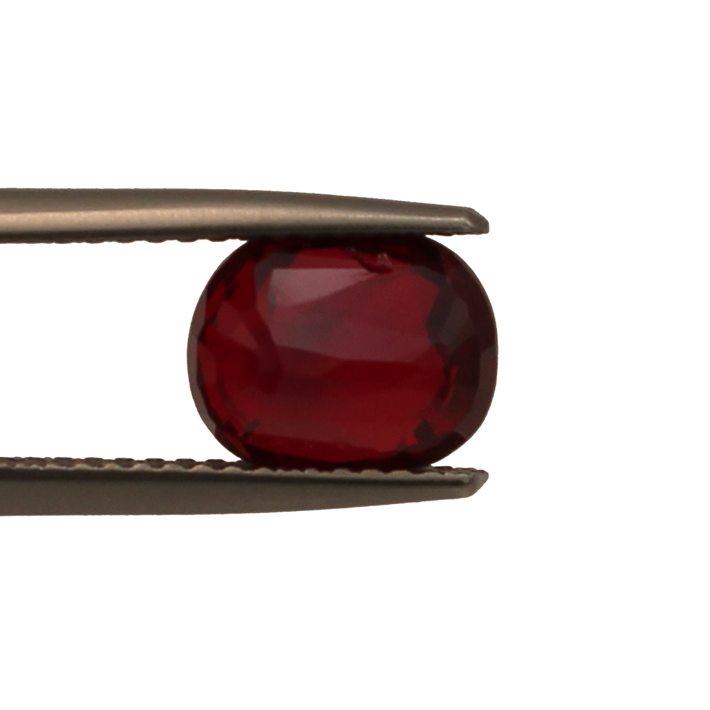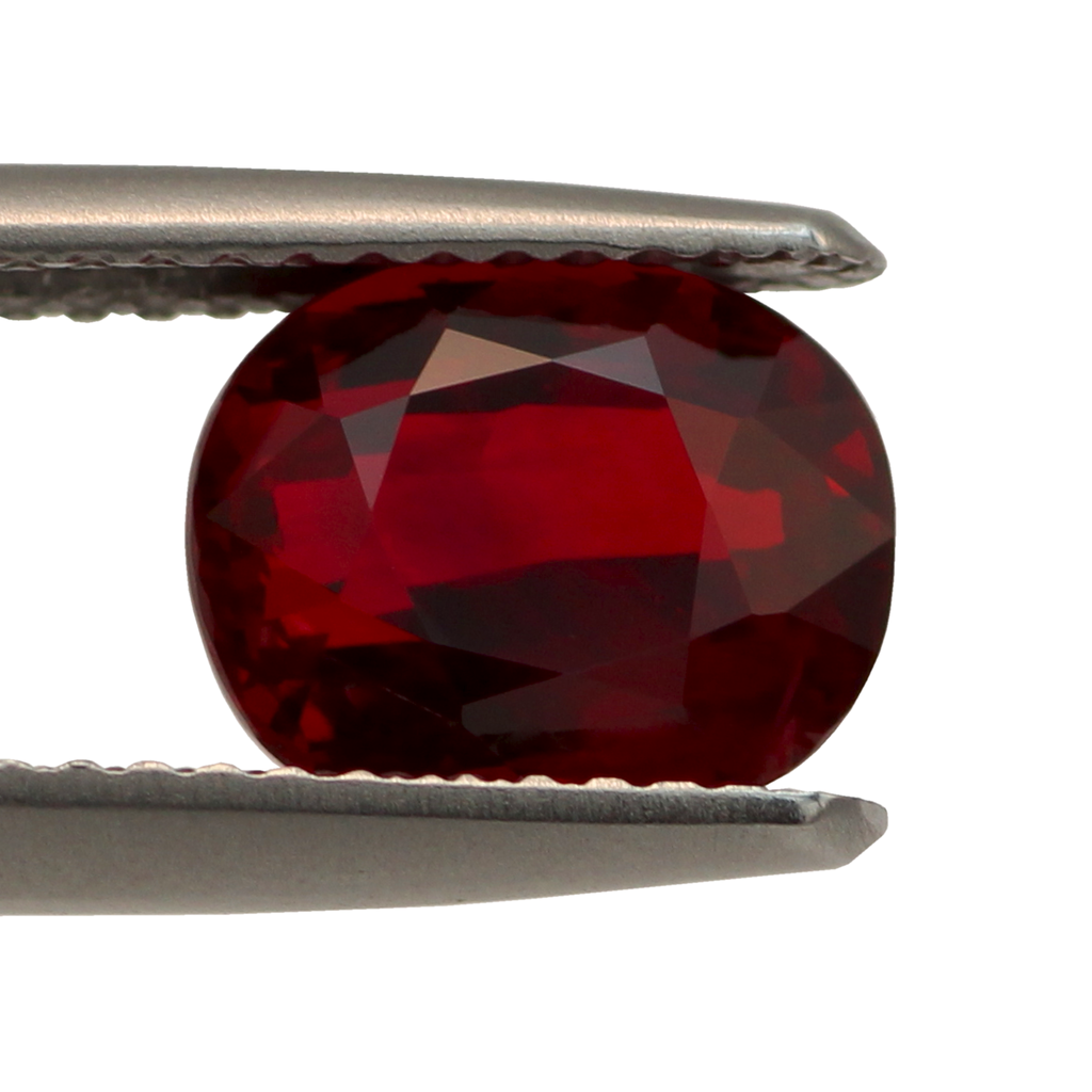 A Natural Ruby Oval with Heat treatment. This stone has a brilliant fire, good luster and is Eye Clean with a pleasing red tone. The colour is certified as Vivid Red (Pigeon Blood).