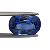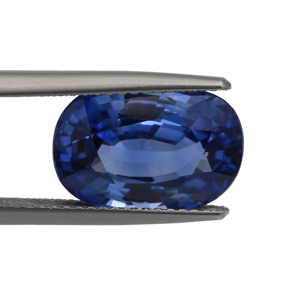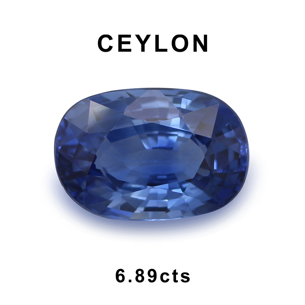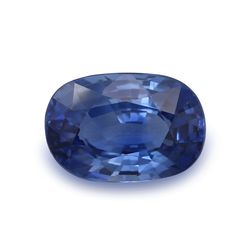 A Natural Heated Blue Sapphire Oval with a soft blue shade and a crisp fire. This stone has a very slight eye visible inclusion on the star facet, has a strong luster and a long face.